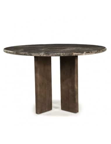 LANDO Rundt spisebord udført i et moderne design, fremstillet i brunlakeret mangotræ og mørkebrun marmor. Spisebordet måler 76 cm i højden og 127 cm i diameter.