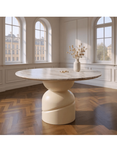 Rundt spisebord udført i et nordisk design