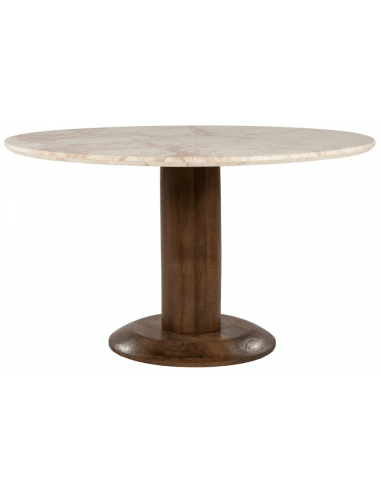 TED Rundt spisebord udført i et design, fremstillet med stel i brunbejset mangotræ og bordplade i rødbrun marmor. Spisebordet måler 76 cm i højden og 130 cm i diameter.