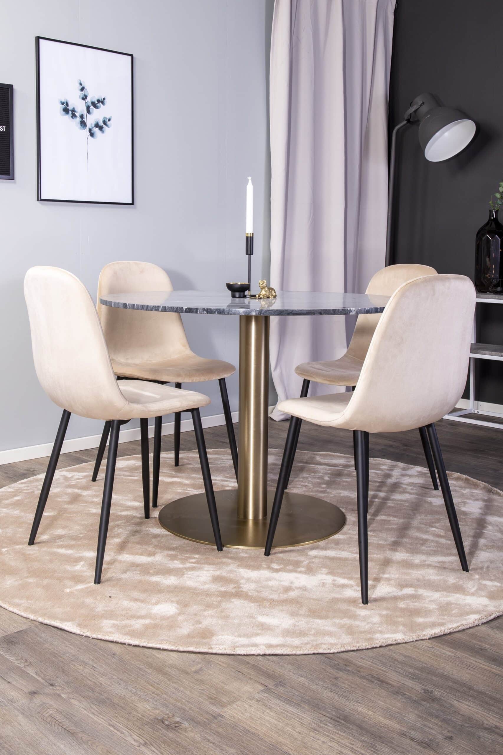Her ser du et Estelle spisebord, der kommer fra Venture Design. Bordet er lavet i sort marmor med stilfulde ben i mat børstet messing metal. Dette spisebord er designet i en nordisk og moderne stilart, og det kan anvendes både i stuen og køkkenet. Du k