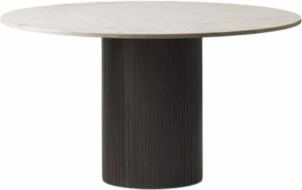 Det runde Cabin bord er et mellemstørrelse bord til spisestuen eller køkkenet. Bordet har en base af solid, lakeret mørk eg med en bordplade af marmor. Bemærk at hver marmorplade har unikke visuelle karakteristika.